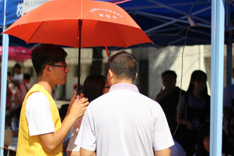 为了让新生能准确找到帮助,志愿者们全部头戴红帽以提高辨识度,从新生及家长们到达迎新点的那一刻起,他们就热情招待疲惫的家长及新生。为远道而来的家长倒水解渴,为想了解南华大学的家长们讲述校园人文环境;带领学弟学妹们完成报到、解说报到流程,或带领新生领取物资、帮忙搬运行李。没有时间休息,他们一趟趟来回奔波于迎新点和宿舍,带领着一位又一位新生办理相关手续。在红帽们的帮助下,报到工作有条不紊地进行着。